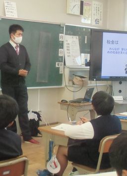 6年生対象に租税教室を行いました。税務署から講師を招き、税の役割について学習しました。もし税金を集めなければ・・・道路の管理、ごみの収集、火災の消火、救急車の利用・・・いろいろな面で税が役立っていることを学びました。1億円のレプリカも持たせていただき、お金の重さも感じていました。まさとらさんの感想には「税金はいろいろな種類がありました。自分の家にあるものにも、いろいろ税がかかっていました。こんなにたくさん税金を集めているのに、国には借金があることを知り驚きました。税のことを学べてよかったです。」と書いていました。正しく知ることは、生活していくうえで大切ですね。