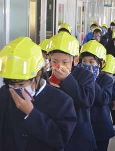 防災頭巾やヘルメットを教師の指示なくかぶれ、避難場所に全員集合できました。シューターの使い方も、6年生が体験しながら全校生で学べました。いろいろな場面を想定して訓練しておくことが大切ですね。もしもの時には、落ち着いて行動しましょう。