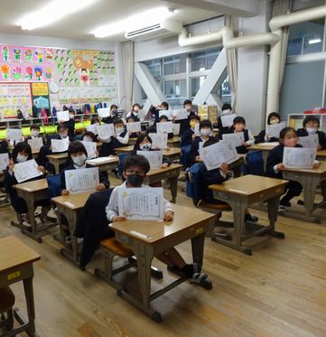 また「さわやかチェックがんばったで賞」も保健委員会から送られました。健康でさわやかに過ごすために3学期も、ハンカチ・ティッシュ・爪・髪型など、身だしなみをチェックして登校し、よいスタートを切りましょう。