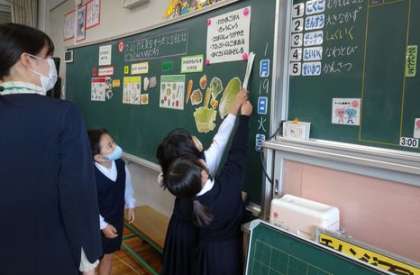 赤・黄・緑の3つの栄養をそろえて食べることの大切さを知った子どもたち。「好き嫌いはしないよ。」「給食もモリモリ食べるよ。」という感想が聞かれました。