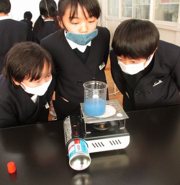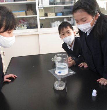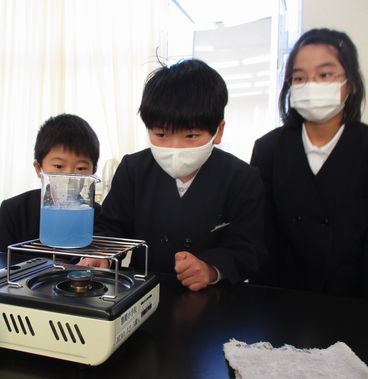 各自で予想して実験方法も考えました。金属のように順番に伝わっていくと考える子、空気のように対流しながら伝わると考える子、水独特の伝わり方があるのでは?と考える子など様々です。予想して実験し、結果を考察する経験を積み重ねることで、4年生の子どもたちも論理的な思考ができるようになってきています。サーモインクや絵の具などの実験材料、ガスコンロやアルコールランプなどの実験器具、実験の順番なども選択して実験できていました。目を輝かせて学んでいる楽しい授業でした。