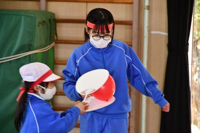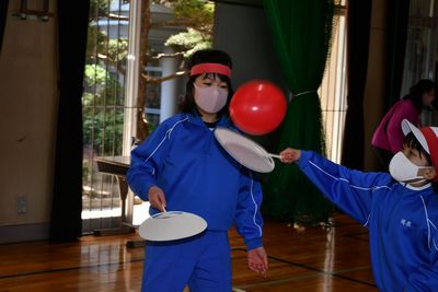 1年生が6年生に楽しんでもらうために考えたゲームは「風船運びゲーム」でした。