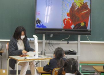 読書タイムに、学校図書館司書の今川先生が読み聞かせをしてくれました。