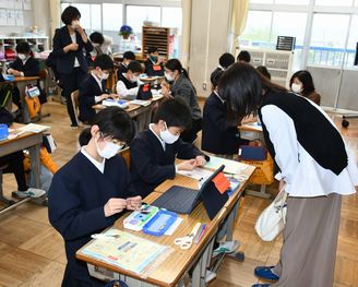 3時間目は算数でした。L字型の図形の体積を求めました。直方体の体積の出し方、以前学習したL字型の平面の面積の出し方などを思い出し、新しい方法を導き出していました。グループでしっかり考え、発表の時には「分ける」「付け足す」などのキーワードが子どもたちから挙がってきました。成長を感じます。