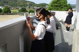 お天気キャスターに挑戦!(5年生) 公開日 2021/05/10 更新日 2021/05/10 5年生 5月10日(月) 理科の学習で天気の変化について学習しました。 学んだことを生活に生かす!とても大切なことです。そこで、気象情報(衛星写真やアメダスの降水量等)と実際に見える空の様子から明日に天気を予想し、校内放送で、全校生にお知らせすることにしました。 登校後すぐにタブレットを使いこなし、情報を獲得し、バタバタと、しかし、生き生きと天気予報をする5年生でした。