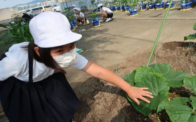 5月に植えた野菜が、とても大きくなりました。手より大きな葉もあって、びっくり!