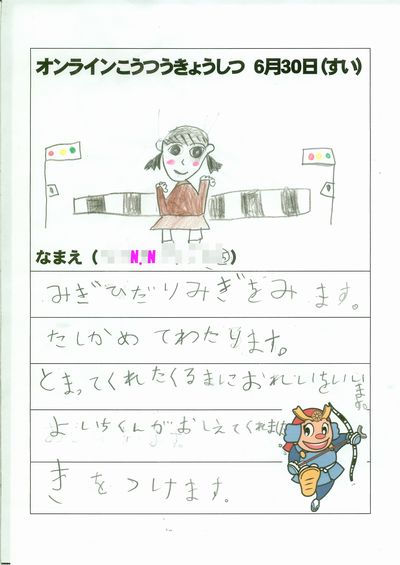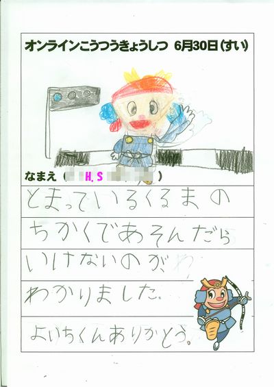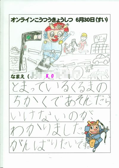 写真は、オンライン交通教室の感想です。スペースの関係で、3名のをを載せています。