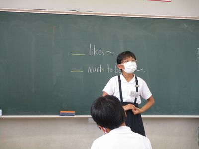 外国語の授業で、英語のスピーチを行いました。スピーチを終えた子どもの感想を紹介します。