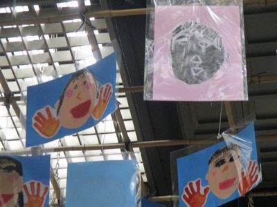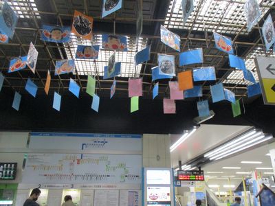 丸亀駅の天井に、1・2年生の笑顔の絵を展示してくれていました。