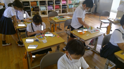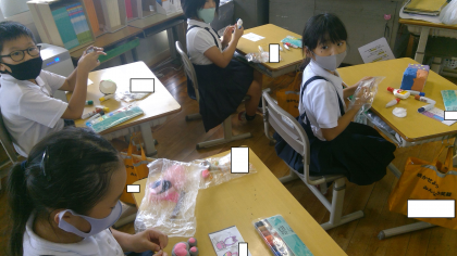 図工(カラフルねん土) 公開日 2021/10/01 更新日 2021/10/01 3年生 紙ねん土と絵の具絵を使って、オリジナルの鉛筆立てやネックレス、アクセサリー、写真立てなど作りました。好きな模様や色を使って、世界に1つの物を作り上げています。