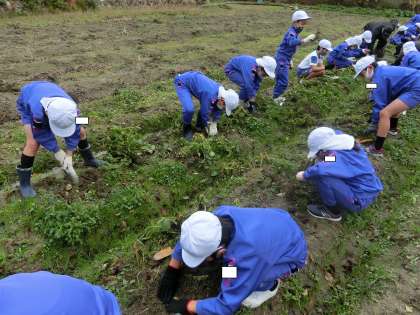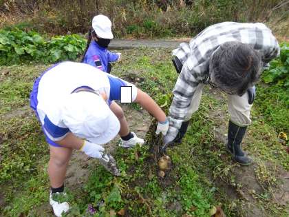 ジャガイモ掘り 公開日 2021/12/17 更新日 2021/12/17 学校全体 本日、2年生と3年生がジャガイモ掘り体験をいたしました。地域の方々のお力添えもあり、たくさんのジャガイモやダイコン、カブを収穫することができました。子ども達は、野菜の大きさにとても驚いていました。