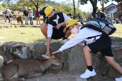 今日は待ちに待った修学旅行です。快晴の中、26名全員そろって出発できました。東大寺や金閣寺、銀閣を見て回りました。今も楽しみです。