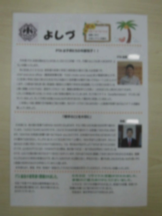 本日長子のお子さんにPTA新聞を持って帰ってもらっています。ご確認ください。