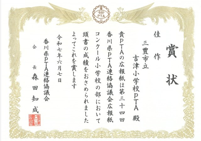 なお、令和6年度の吉津小PTA新聞が県PTAから表彰(佳作)されました。
