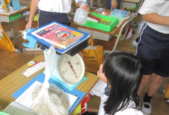 1kgの砂袋の量感をもとに再度1kgになりそうなものを見つける活動をしました。