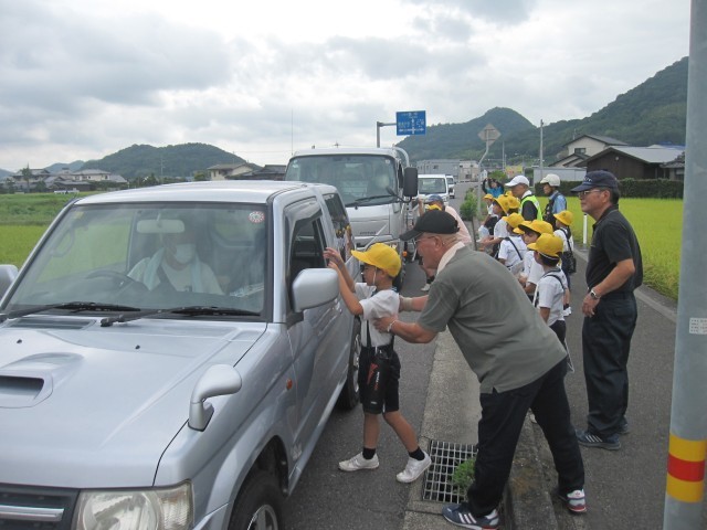 今日(9月26日)、2年生が、校区内(郵便局近く)の県道で交通キャンペーンに参加しました。