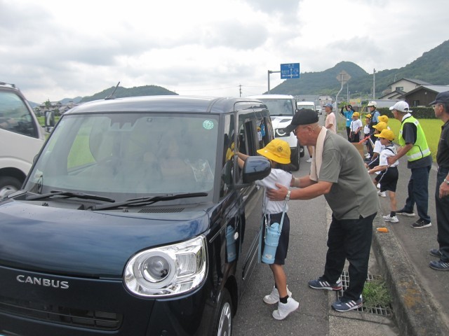 三豊警察署、吉津地区社会福祉協議会の方々の協力を得ながら、キャンペーングッズを手渡し、道行く車に交通安全を呼びかけました。