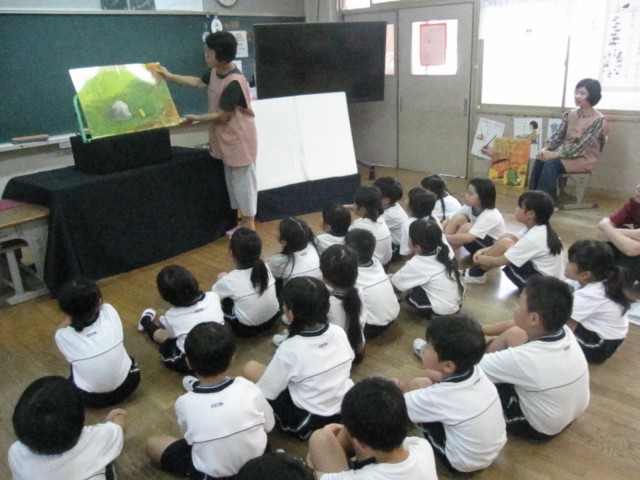 9月にはいって、様々な学年で「ももの会」の方が読み聞かせに来てくださっています。