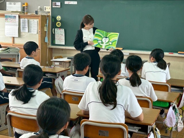 今朝(10月2日)、図書館司書の今川先生が6年生に読み聞かせをしてくれました。
