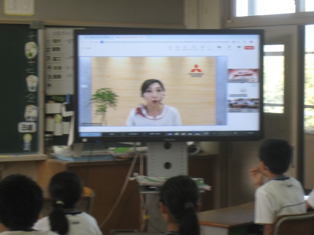 三菱自動車の京都の自動車工場の方とオンラインでつながり、自動車ができるまでについて工場の中の様子を見ることができました。