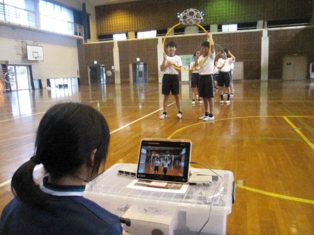 ドローンについての話を聞いた後、ボール型のドローンでキャッチボールをしたり、実際にコントローラーで操作したりしました。