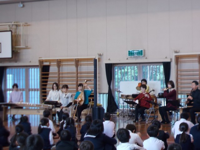 11月11日(火)文化庁主催の「学校巡回公演」により、日本音楽集団の皆さんが、東京から来て演奏してくださいました。