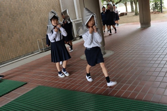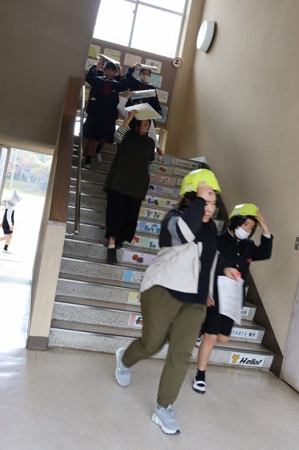 今回は、いつもの避難経路に落下物などがあるという想定も付け加えて避難する訓練もしました。