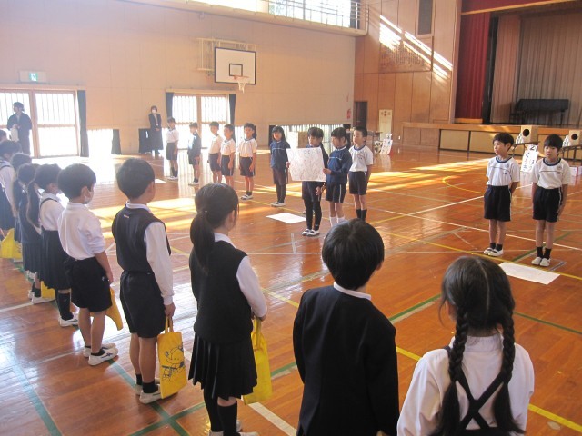 2年生は、あそびに来た1年生たちに上手に説明をしていました。
