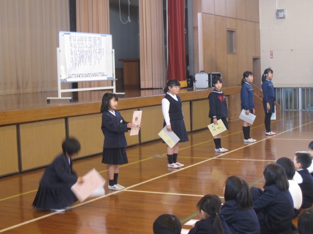各学年の学級の取り組みの発表、クラス代表の人権啓発標語の発表では、みんなよく練習していて、堂々と発表できていました。