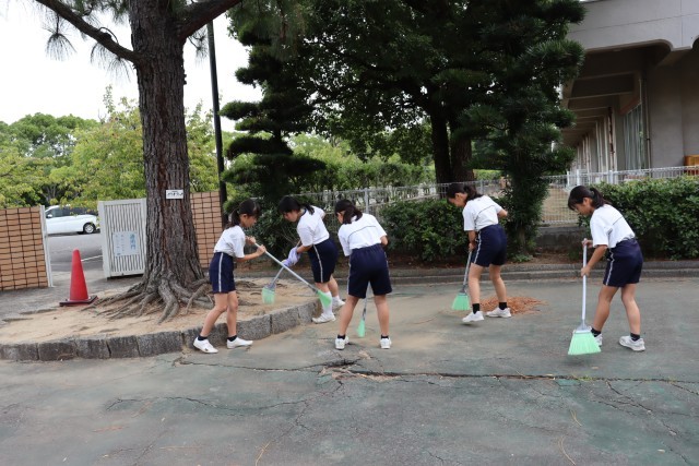 10月には、玄関にたまった砂で転んだ下級生のことを思った4年生がボランティアに参加してくれました。