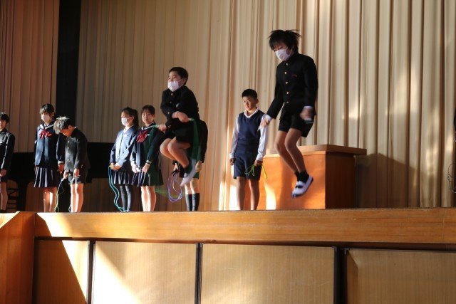 始業式の後は、表彰や体育委員会の人による縄跳びの紹介がありました。