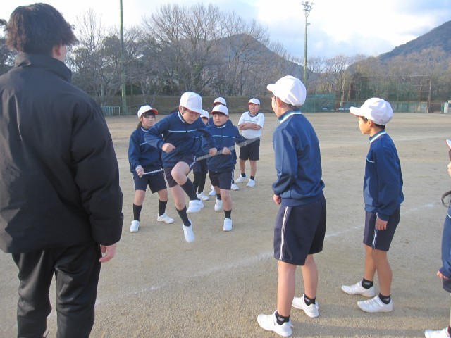 今日は、健康タイムで縦割り班ごとに長縄で8の字跳びの練習をしました。1年生も縄に入るタイミングをつかもうと、先輩のアドバイスをもらいながら頑張っていました。3分間で110回以上とべたグループもありました。これから記録を伸ばせていけるといいですね。