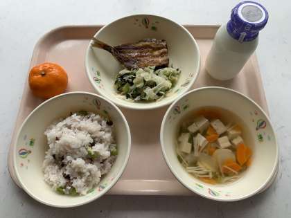 ・小豆の赤紫色を萩の花に、枝豆の緑色を