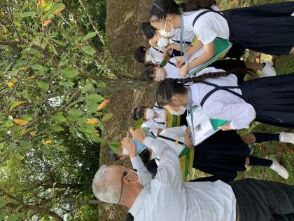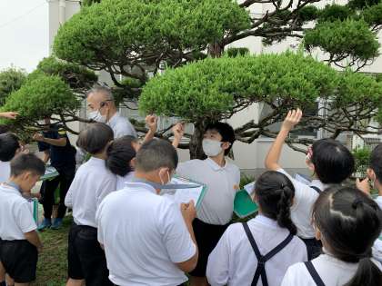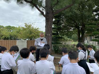 9月29日(金)に、樹木医の高橋先生をお招きして、校庭内の樹木の秘密を学びました。日頃何気なく見ている木にいろいろな不思議がありました。真剣に話を聞き、「本物の木」から五感を使ってたくさんの事を学んだ4年生でした。