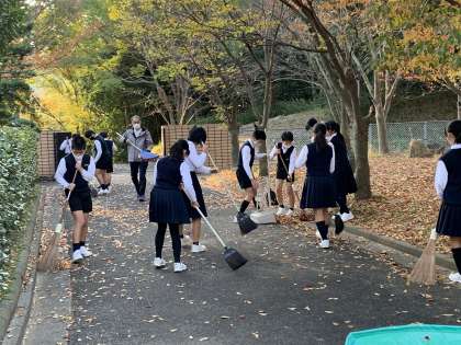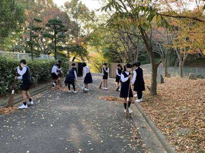 今朝は、6年生全員でボランティア清掃をしました。きれいに掃いたところに上から上から落ちてきますが、一生懸命落ち葉を集めました。