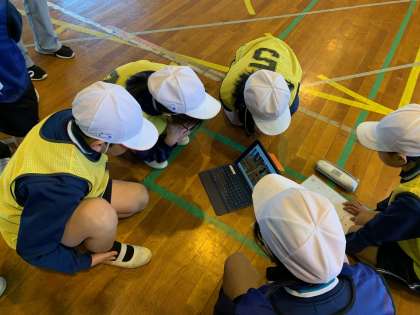 授業が進むごとにボール操作が上手くなり、本時ではチームで声をかけながら「つなぐ」楽しさを味わっていました。