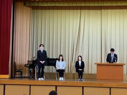 まず、新任式が行われ、新しく5名の先生方が着任されました。