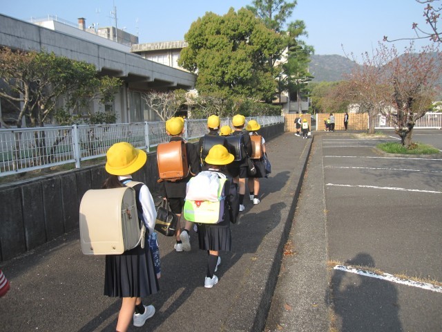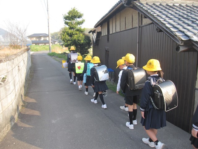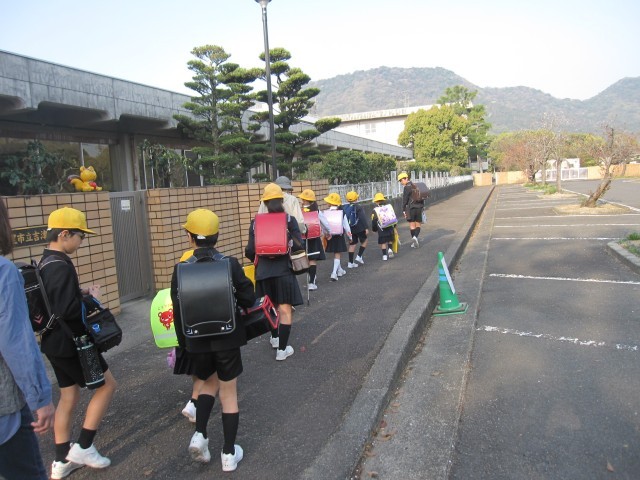 3方向から小学校まで上がってきます。荷物をたくさん持った1年生もがんばって階段や坂道を登っていました。