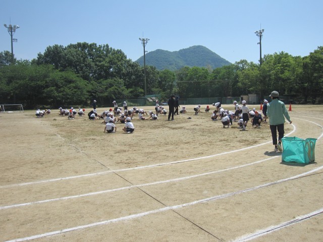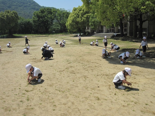 そして、お昼は、「みどりの時間」を設定し、全校生で、トラックの周りや中の雑草を抜きました。