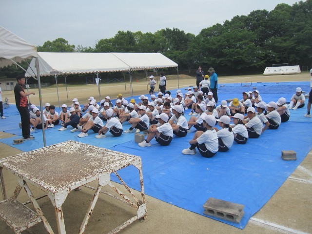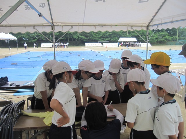 明日の天気を信じて、4~6年生が委員会ごとに分かれて、本番準備を運動場でしてくれました。雨に備え、運動場一面にブルーシートを敷いたり、テントを移動したりと、児童たちも先生方も一生懸命作業してくれました。運動場が明日の運動会の成功を信じて頑張っている空気感に胸が熱くなりました。