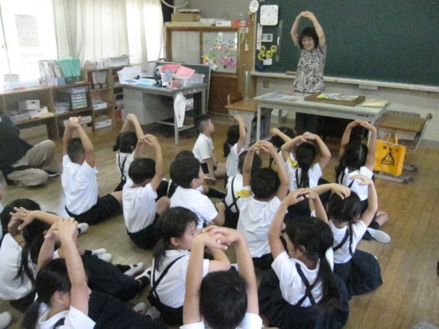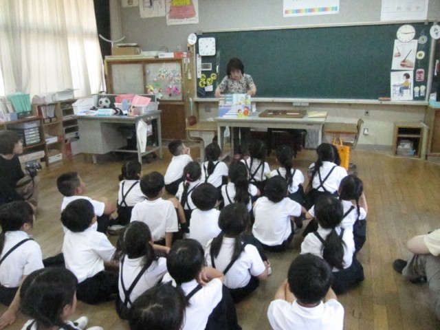 今日(19日)交通安全母の会の三木さんが、交通安全の紙芝居を1年生にしてくれました。