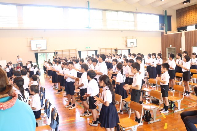 最後は、ライラックや吉津小学校の校歌を全校生で合唱して大いに盛り上がりました。