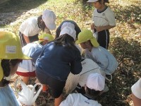 「あったー。どんぐり!」 今日、1年生が年長さんといっしょに、秋を見つけに伊...