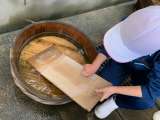洗濯板を使って、布切れを洗濯しました。 板の上でゴシゴシすると、汚れがしっかり落...