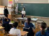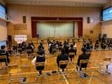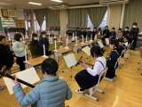 1年生がピアニカのけいこをしています。 「すずめがちゅん、ちゅん、ちゅん」で「ち...