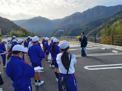 5年生は、体験学習に塩江に行っています。とても天気もよく日差しの暖かい中、塩江に新しくできた椛川ダムを見学しています。