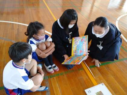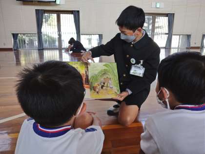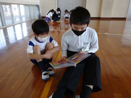 1年生が選んだ本を、6年生が読み聞かせをしました。上手に読めるように、事前に練習をしました。