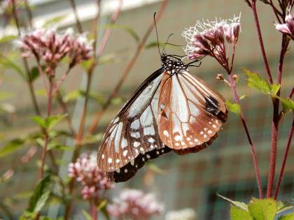 今日ふと、校舎裏のとてもきれいに咲いているフジバカマの花壇を見ていると、アサギマダラがやってきました。アサギマダラは、日本から台湾・香港へと長距離を移動する旅をする蝶として知られています。とても珍しい蝶に出会うことができました。