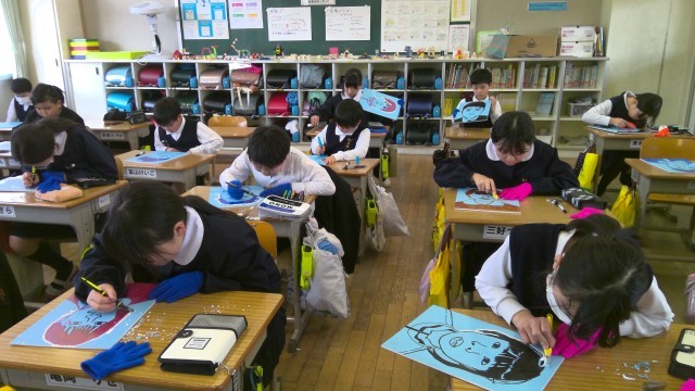 4年生は図工で版画をしています。今日は彫刻刀デビューでした。事前に安全な使い方...