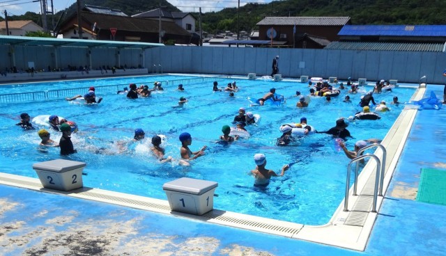 デイキャンプ③ 公開日 2025/07/19 更新日 2025/07/19 5年生 持ってきた物でプール遊びをしました。コースロープは片付けられ、広いプールです。授業とは違う楽しさを感じられたと思います。 終わりの言葉では、各クラスの代表が思い思いに自分の言葉で感想や感謝を伝えることができました。 保護者の皆様、暑い中、準備に始まり送迎までご協力いただきありがとうございました。